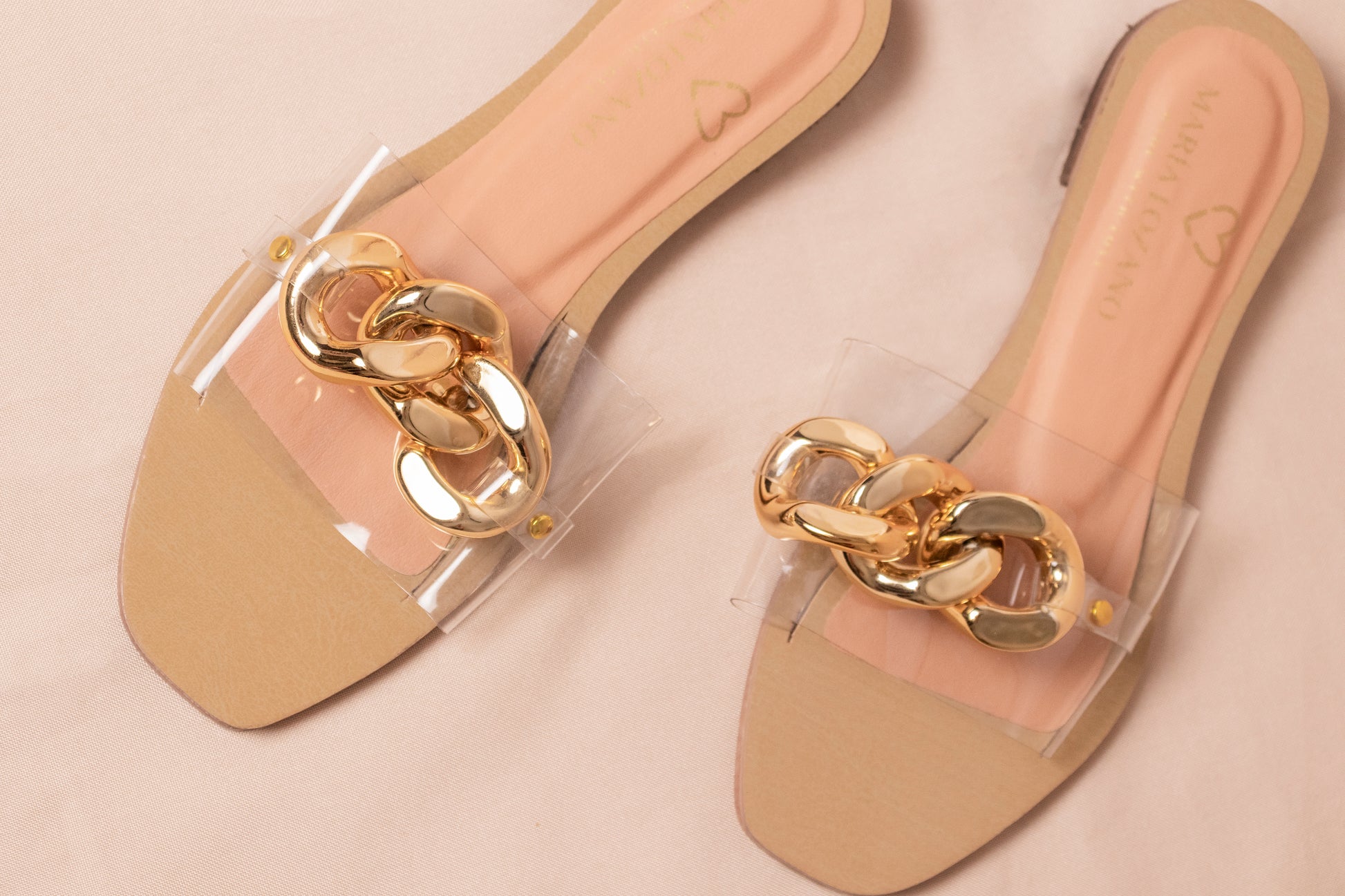 Diseñadas para destacar, estas sandalias planas con cadena dorada y tiras transparentes combinan lo clásico del lujo con un diseño minimalista y fresco. Son el complemento perfecto para elevar cualquier outfit con elegancia sin sacrificar comodidad.